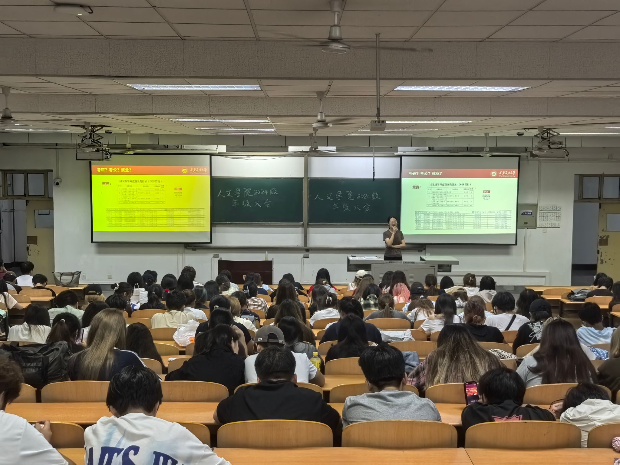 会议伊始,樊煜针对学生手册中关于本科生毕业要求进行了重申,内容涵盖学籍管理规定、学位授予条件以及第二课堂学分要求等方面。她着重强调:“顺利毕业是一切计划的前提,学生们要自查自纠,按要求完成学业。”随后,樊煜对各个专业过去一学年的学业成绩进行了详细分析,指出了学生在学习生活中存在的一些问题,如部分学生课堂出勤率不高、学习习惯不佳、不重视英语四六级等。针对这些问题,她鼓励学生:“要尽早立志,培养良好学习习惯,在这极为关键的大二学年,对自己的未来发展与职业生涯进行初步构想。根据自己的目标方向早作准备,提升个人综合素质,培养工作技能。”