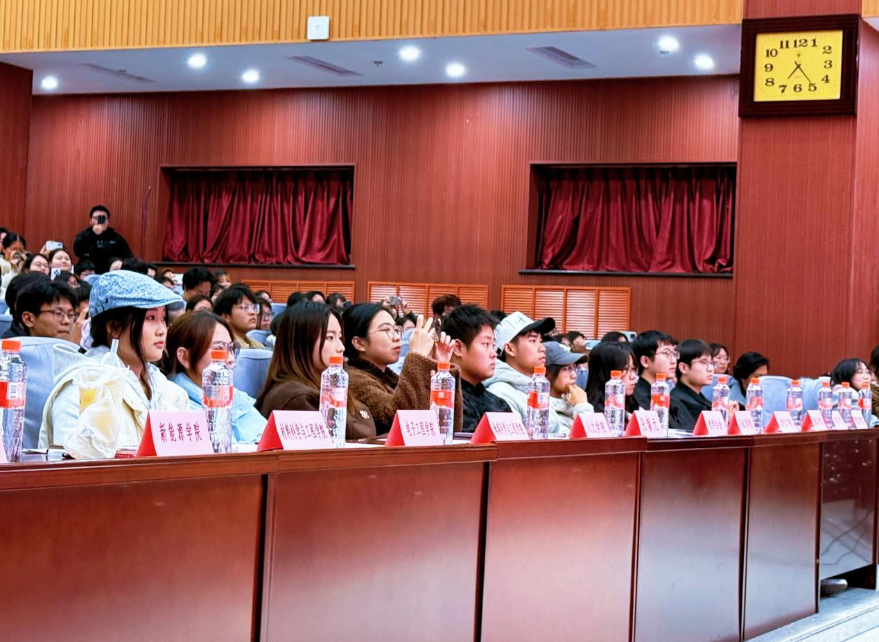2025级辅导员张馨元老师,校、院两级学生会代表出席活动,各学院共400余名学生到场观看。