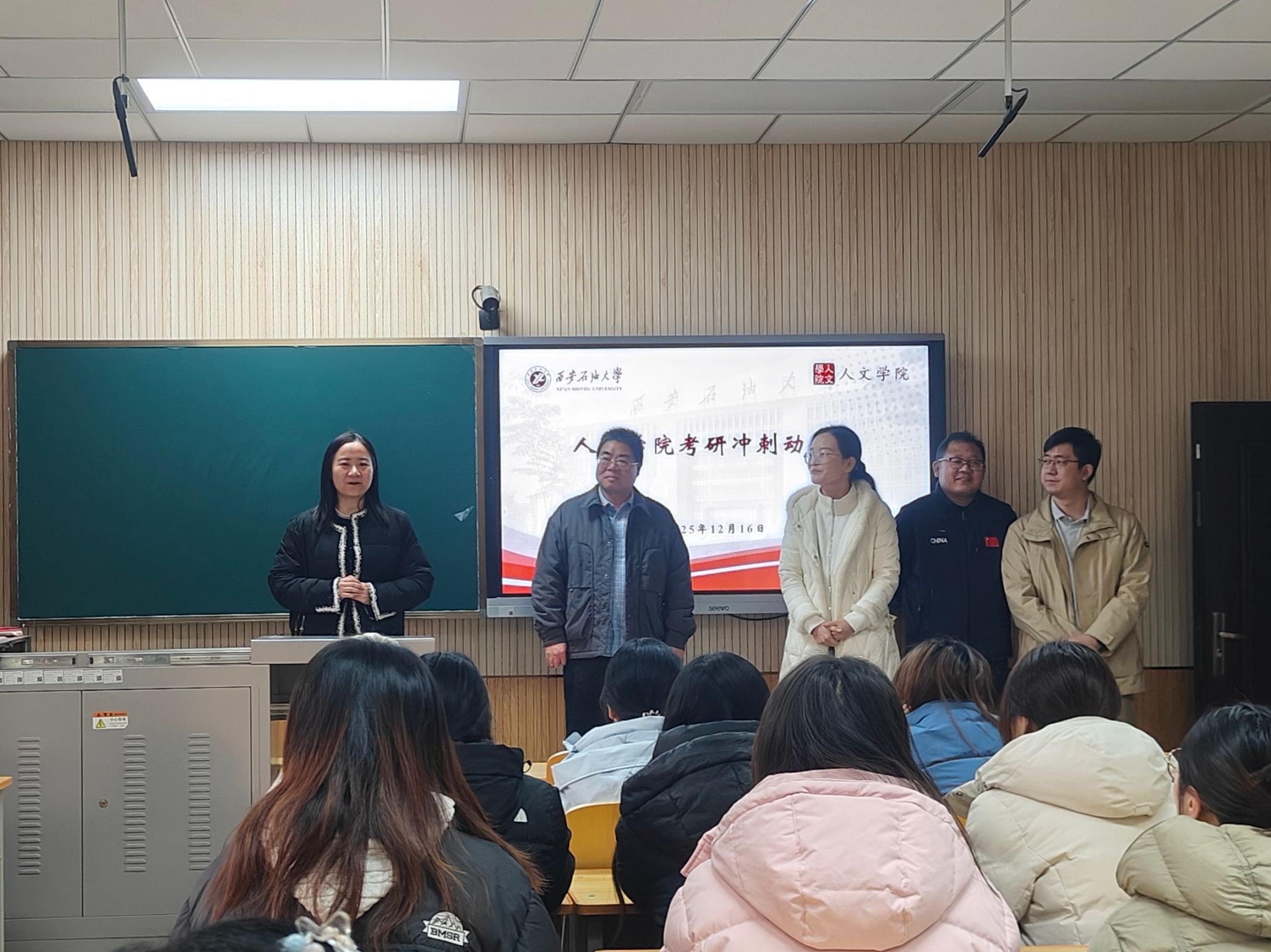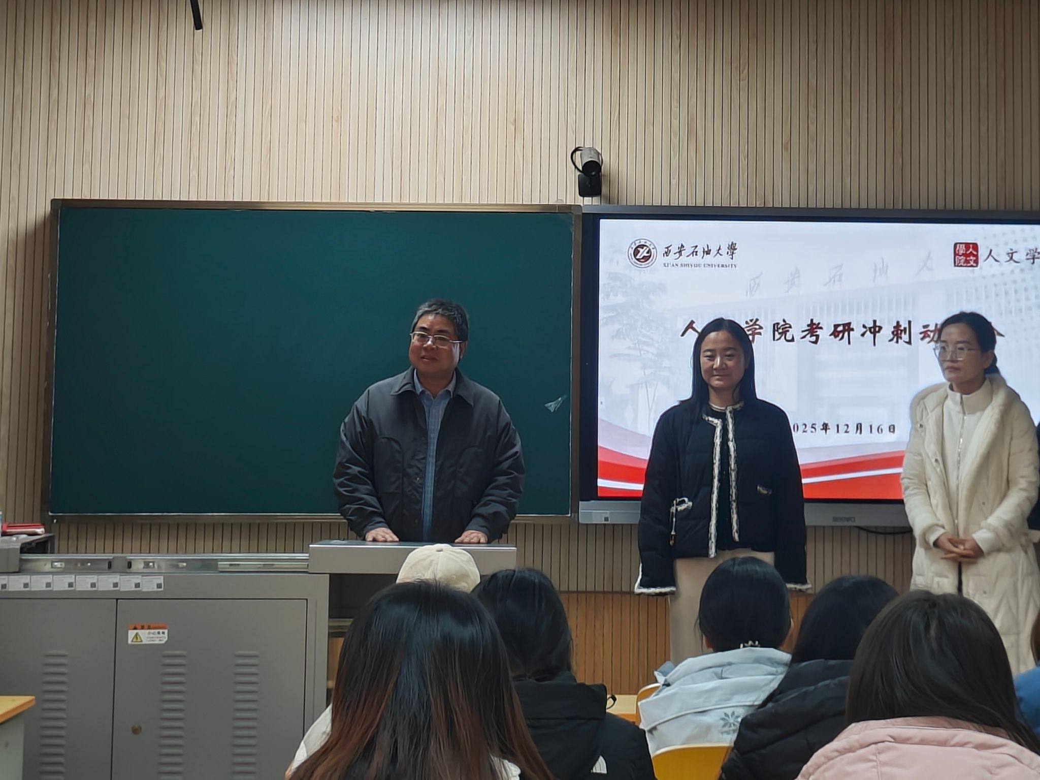 在鄠邑校区崇文楼233教室举办考研冲刺动员暨慰问活动。学院党委书记余小勇、院长方亭、党委副书记郭媛、副院长方松林、兰昆出席活动,向考研学子送上诚挚关怀与殷切寄语。